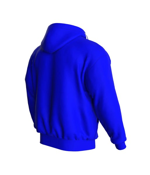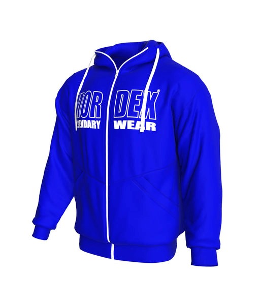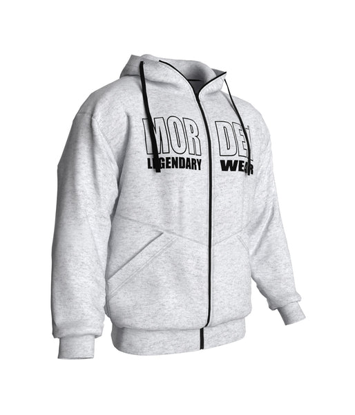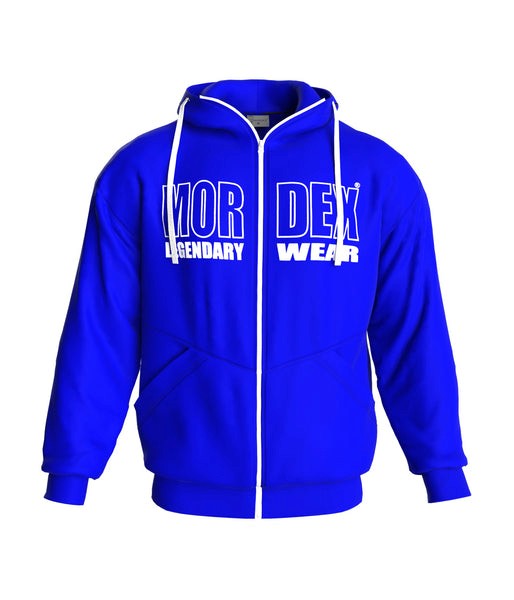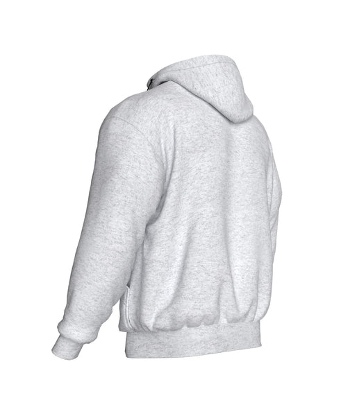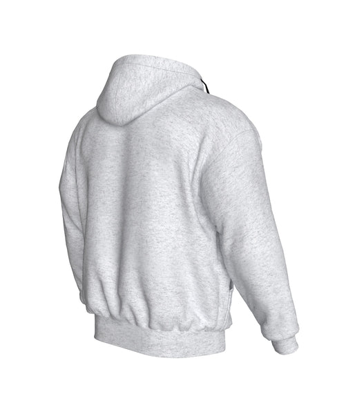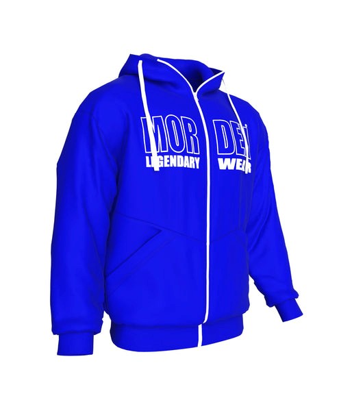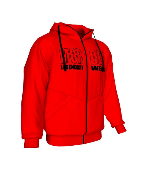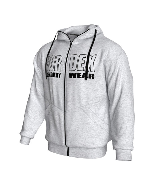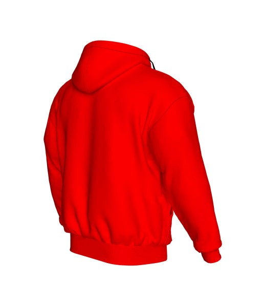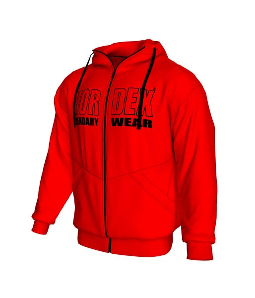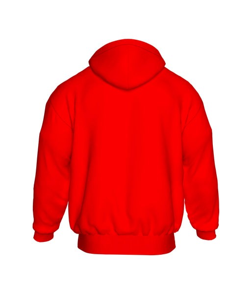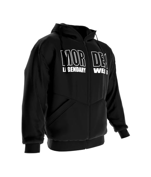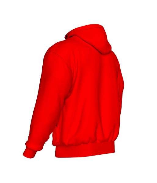 Hoodie (bandit style). Very high collar, two roomy kangaroo-style pockets.