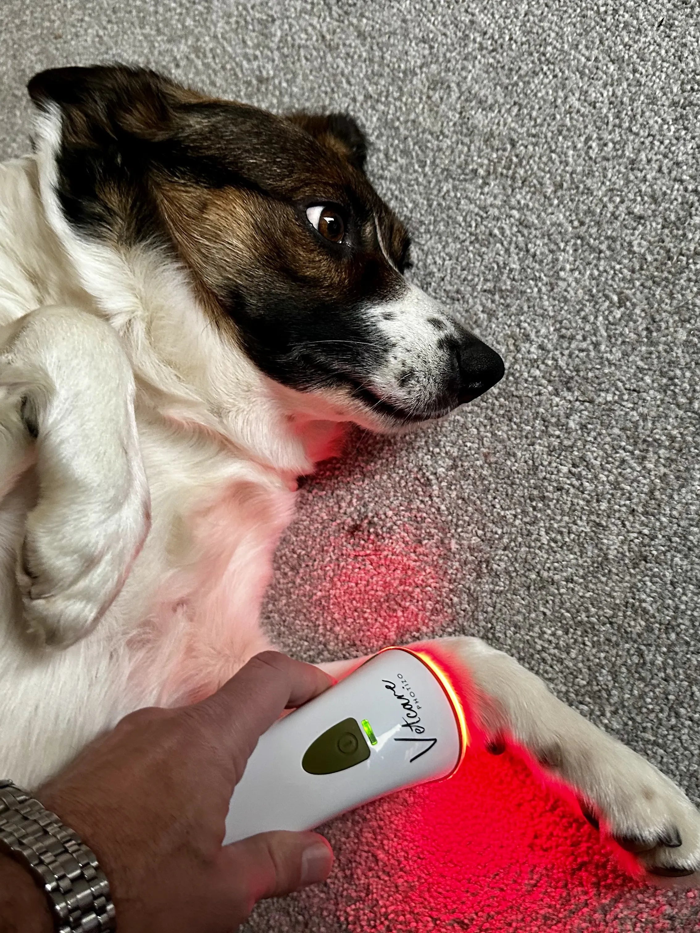 Photizo Vetcare is a non-invasive red light therapy device designed specifically for animals. Using targeted red and near-infrared wavelengths, it helps speed up healing, reduce pain and inflammation, and support recovery from injuries, wounds, arthritis and post-surgery rehabilitation.